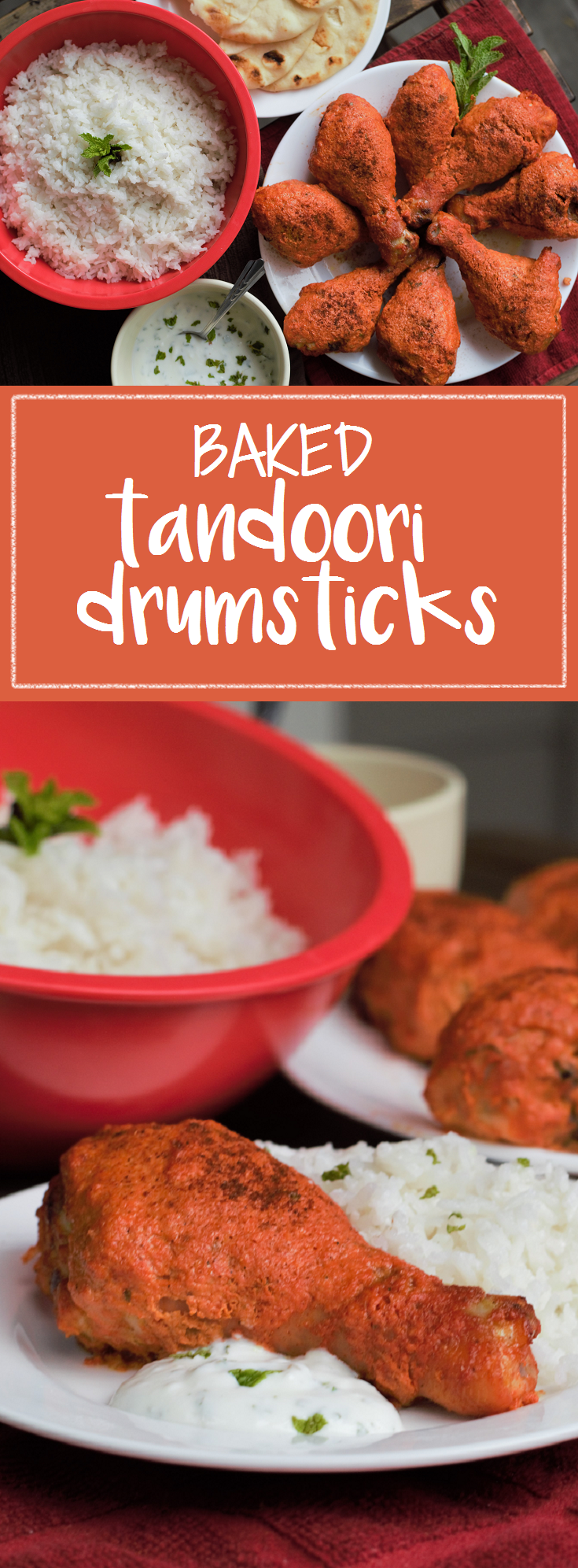 Enter tandoori drumsticks, easy picnic food with super-flavorful spices, served with a big scoop of coconut rice! Tangy mint yogurt dipping sauce helps tone down the spice level. This is one of those dinners where it’s almost impossible to resist going back for seconds… from personal experience.